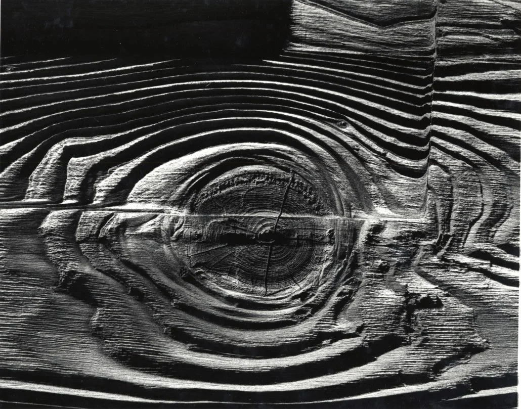 From the 1950s through the 1980s Weston’s style changed sharply and was characterized by high contrast, abstract imagery. The subjects he chose were, for the most part, not unlike what interested him early in his career: plant leaves, knotted roots and tangled kelp. He concentrated mostly on close-ups and abstract details, but his prints reflected a preference for high contrast that reduced his subjects to pure form.